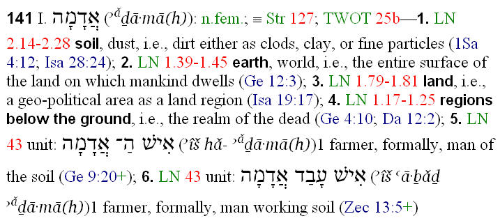 Missler writes: “The first name, Adam, comes from adomah, and means “man.” As the first man, that seems straightforward enough.” Well, it actually isn’t, as Naked Bible readers know by now. First, the name “Adam” does not “come from” the word ‘adamah (Missler misspells it as adomah, with an “o” vowel, or his source did). The word ‘adamah means “ground” or “land.”