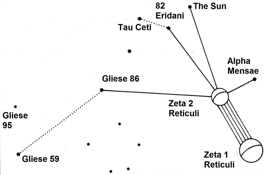 From time to time I see the idea of actual intelligent ET visitation defended on the basis of the Betty and Barney Hill abduction -- specifically, on the basis of the "star map" that Betty Hill allegedly saw while on board the alien space ship during her abduction. Hill purportedly reproduced this map under hypnosis. In the late 1960s Marjorie Fish (a teacher) supposedly succeeded in correlating Hill's star map with real stars associated with Zeta Reticuli, this proving Hill had been on a ship from Zeta Reticuli. The rest, as they say, is history (Nancy Lieder went on to channel the Zetas about how Planet X would factor into the great cataclysm we all witnessed on Dec 21, 2012 . . . sort of).