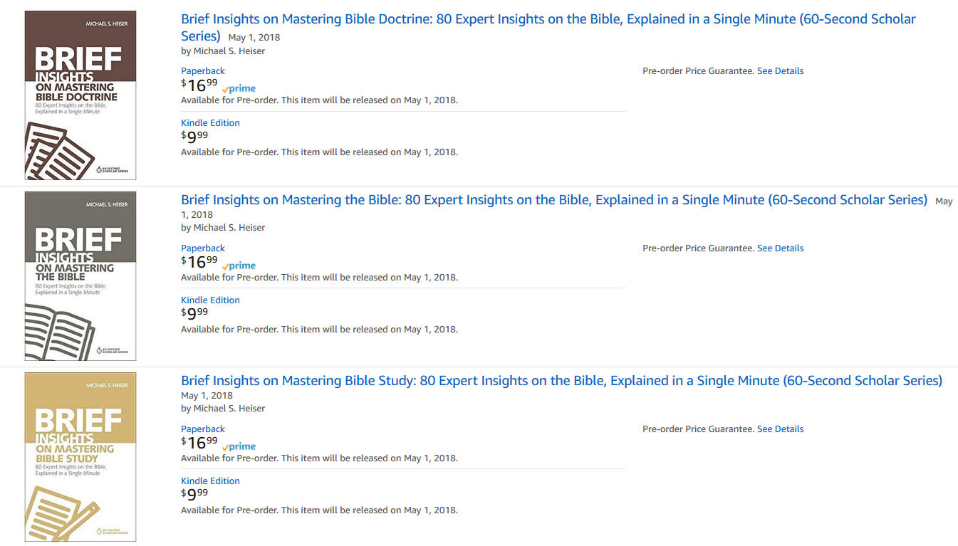 Zondervan’s re-publication of my 60 Second Scholars series officially launches today! I hope that you’ll all order copies for yourself and friends. The books can be ordered via Amazon and chain bookstores like Barnes and Noble. If you order on Amazon, note that the first three titles at the link are the new series — you can tell by the covers and the absence of the ridiculous prices folks are listing for used copies of the original series.