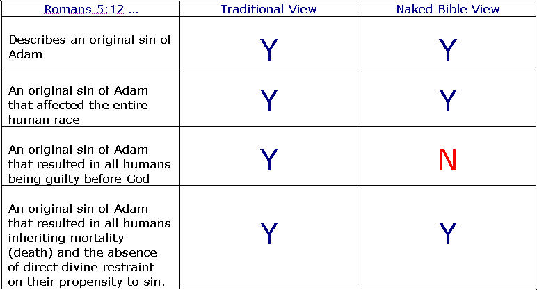 Again, one will note the lack of discussion on why the OT ITSELF doesn’t make the connections the traditional view of Romans 5:12 wants to see Paul making with regard to Adam, all the while including the idea of corporate responsibility. What do I mean? Maybe a chart will help: